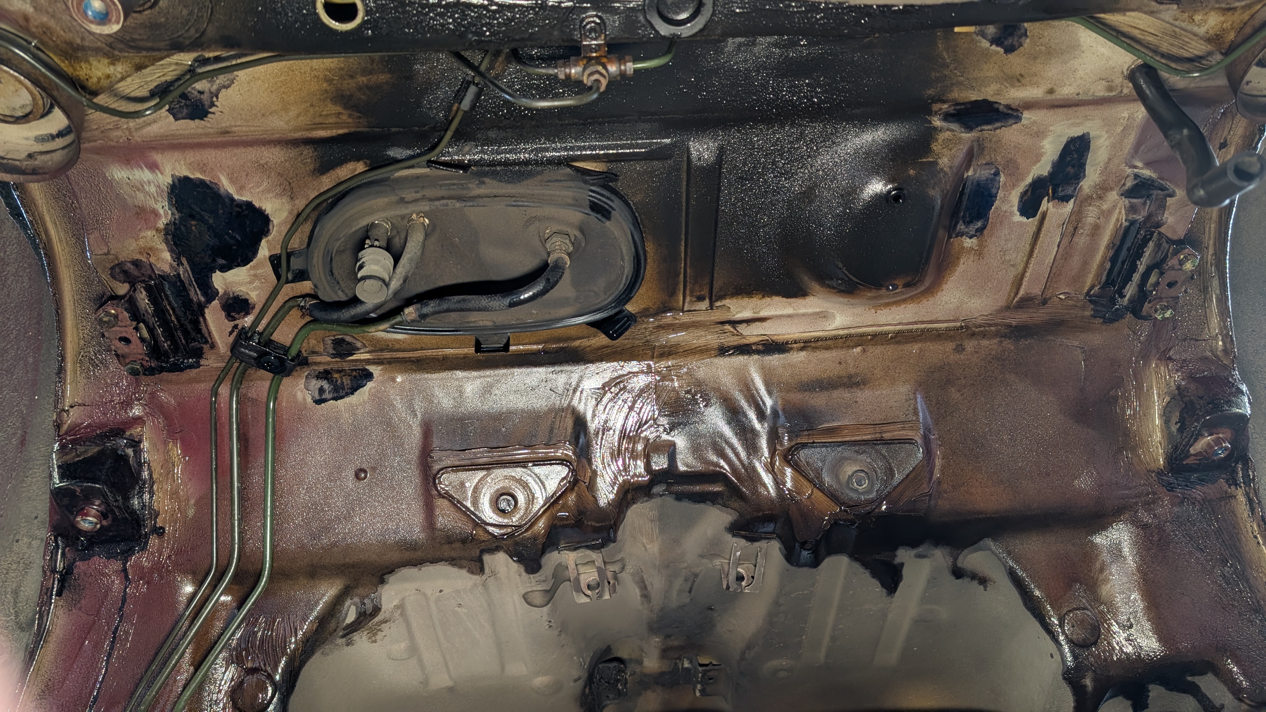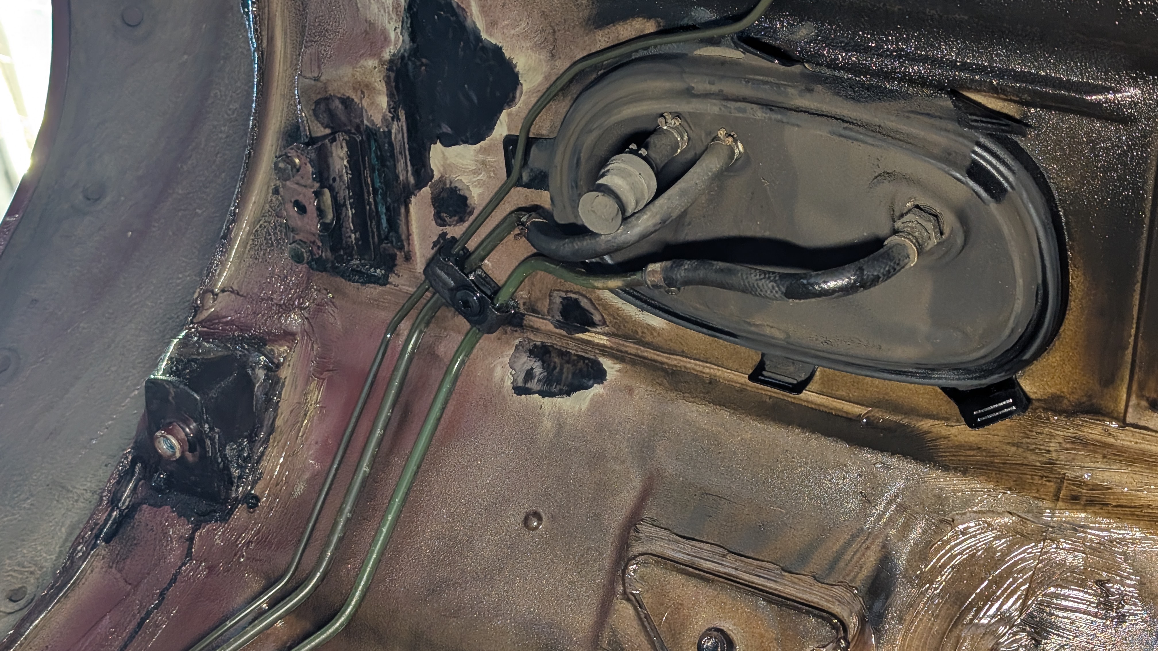 In den folgenden Wochen folgte dann die Wiederbelebung mit Austausch aller Flüssigkeiten, Filter, Schläuche, Bremsen, Reifen usw. – so dass weder der TÜV im Februar 2023 (abgelaufen im September 2017) noch der inzwischen fast tägliche Betrieb kein Problem darstellen. Damit das auch erstmal so bleibt, wurde an diversen Stellen Rost entfernt und entsprechende Vorsorge betrieben.