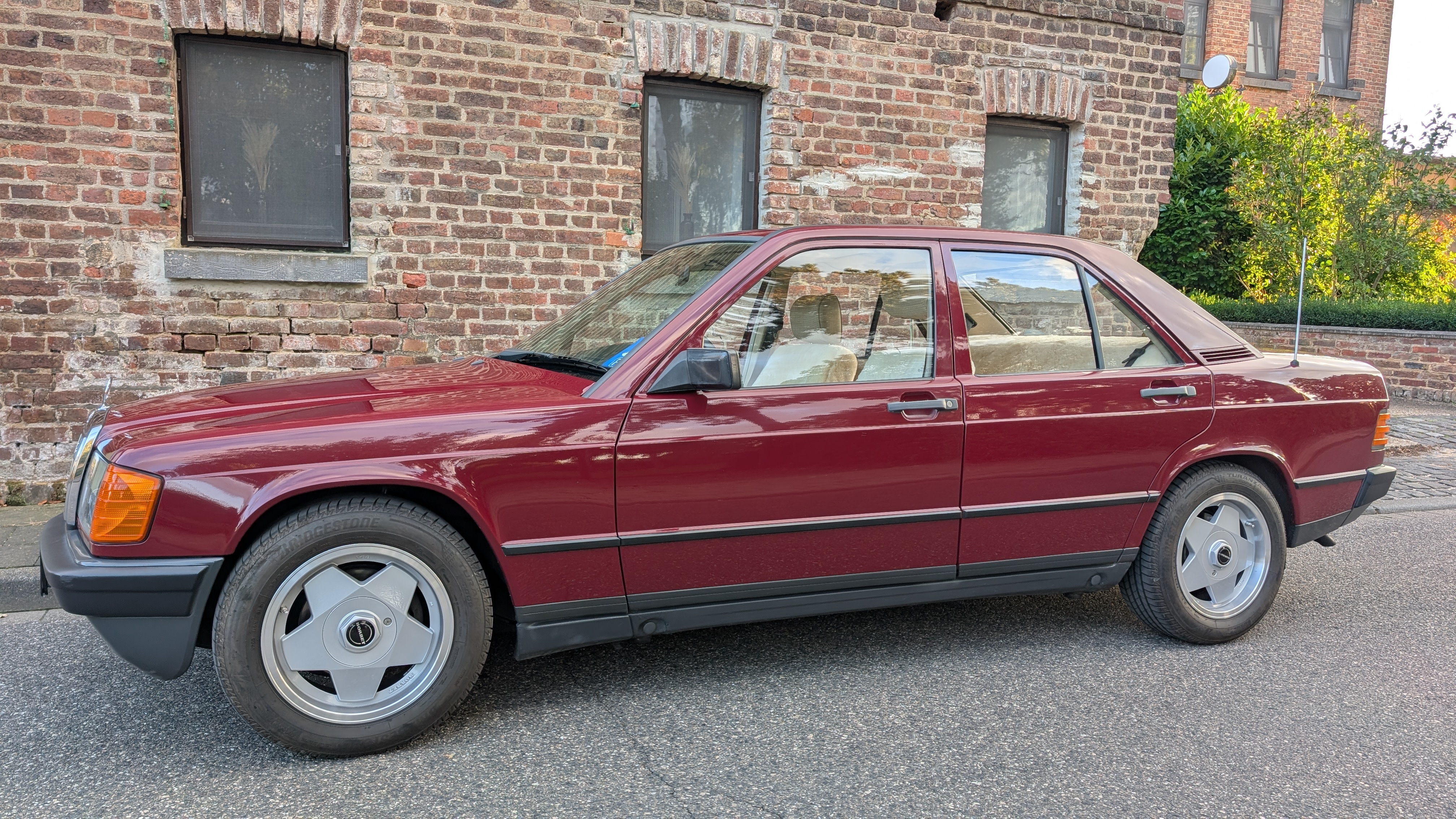 Am nächsten Tag besichtigten wir im Nachbarort einen w201 190 D aus 1985, der dort bereits ein bis zwei Jahre stand und zunehmend verstaubte. Der Wagen gehörte einem älteren und zwischenzeitlich verstorbenen Herren aus Erftstadt Lechenich, einer der Erben war mein Kontakt. Das Auto war und ist nichts besonderes – aber Farbe, Ausstattung und Geruch versetzten mich in eine Zeit zurück, in der ich mit meinem Großvater in dessen w124 umherfuhr – und auch mal in den Campuingurlaub.